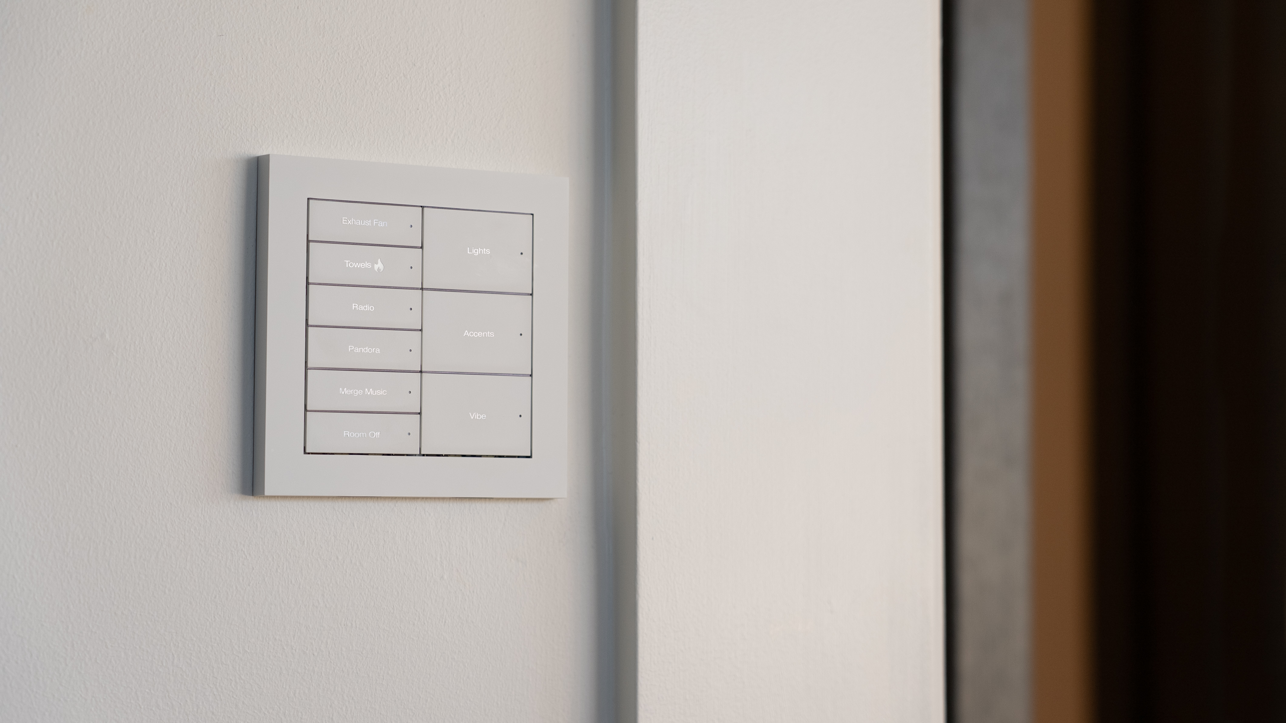 From the outset, Viktor set his team a clear brief: the technology should elevate the home without ever calling attention to itself. That meant every decision from how the lighting controls would be presented to where projectors, cabling and sensors would sit within the architecture had to be coordinated with the interior design rather than imposed upon it. Control4 LUX keypads became central to that approach. Instead of multiple light switches competing for wall space, Viktor used engraved LUX keypads that label each function with clean, intuitive wording. Paired with Vibrant linear lighting, the system allows each engraved button to trigger layered scenes across lighting, shading and audio, keeping the walls visually quiet while giving the homeowner and guests effortless control over each zone.