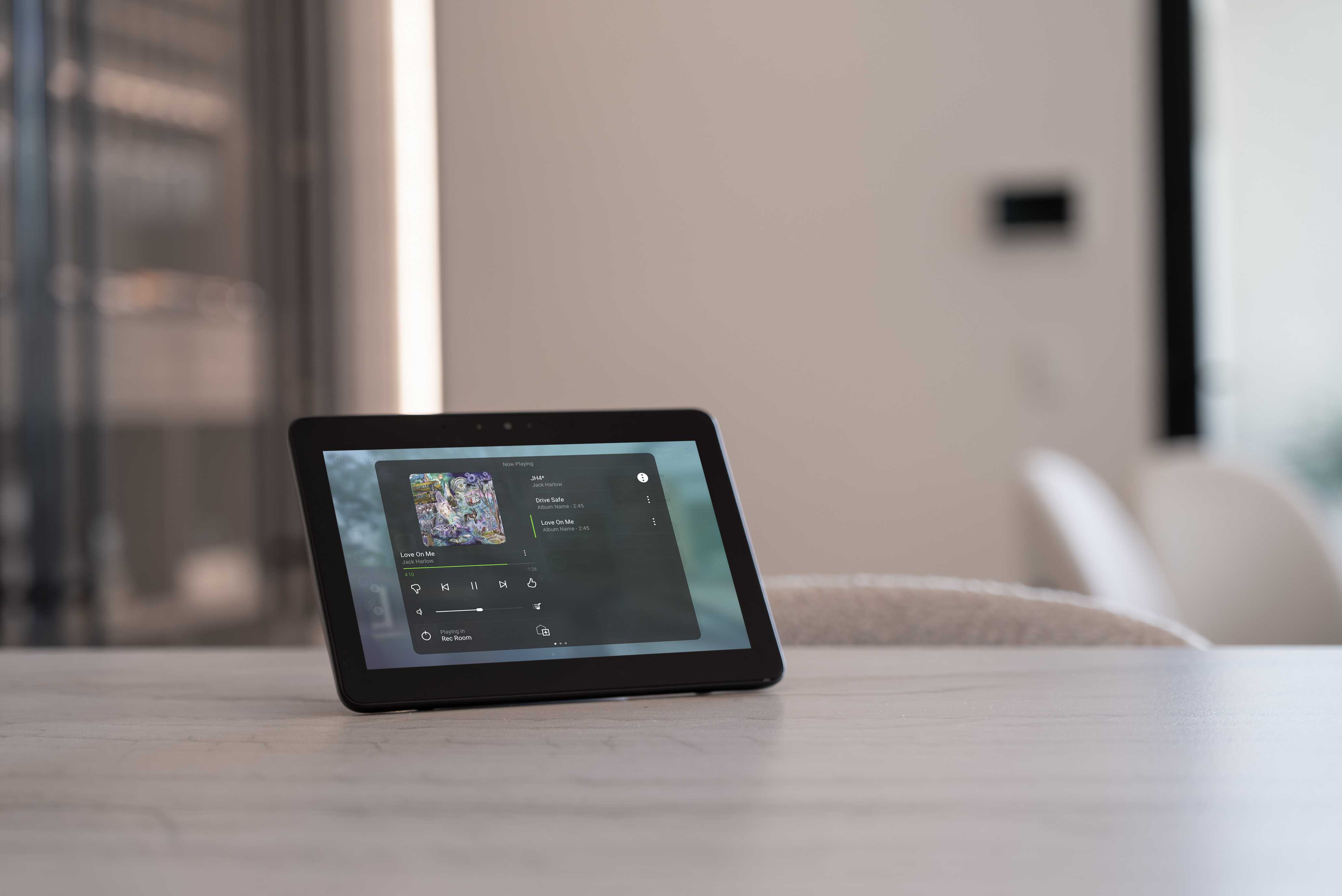 “I never wanted this to feel like someone slapped gear onto every surface,” Viktor explained. “The whole point was to make the system feel native to the home. When clients walk through, they’re struck by how comfortable and intuitive it feels. They notice the atmosphere first — not the hardware behind it.” Arizona’s harsh desert sun made daylight and heat management a critical design consideration. The home includes 28 Clara motorized shades tied into the Control4 platform, with schedules that track the sun and automatically adjust throughout the day. Even the garage windows have automated shading to control heat ingress during peak hours.