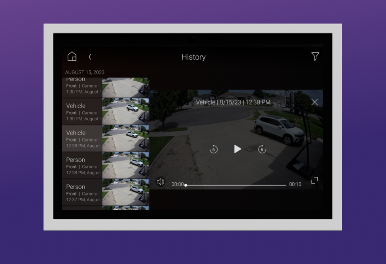 Easily access playback for those saved snapshots and video clips from your Control4 Touchscreens and mobile App. Media can be pinned and shared with whoever you like, no app needed to receive.